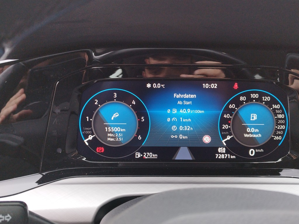 Kraftstoffverbrauch: 6,4 l/100km (Innenstadt), 4,4 l/100km (Stadtrand), 3,9 l/100km (Landstraße), 4,5 l/100km (Autobahn), 4,6 l/100km (komb.)