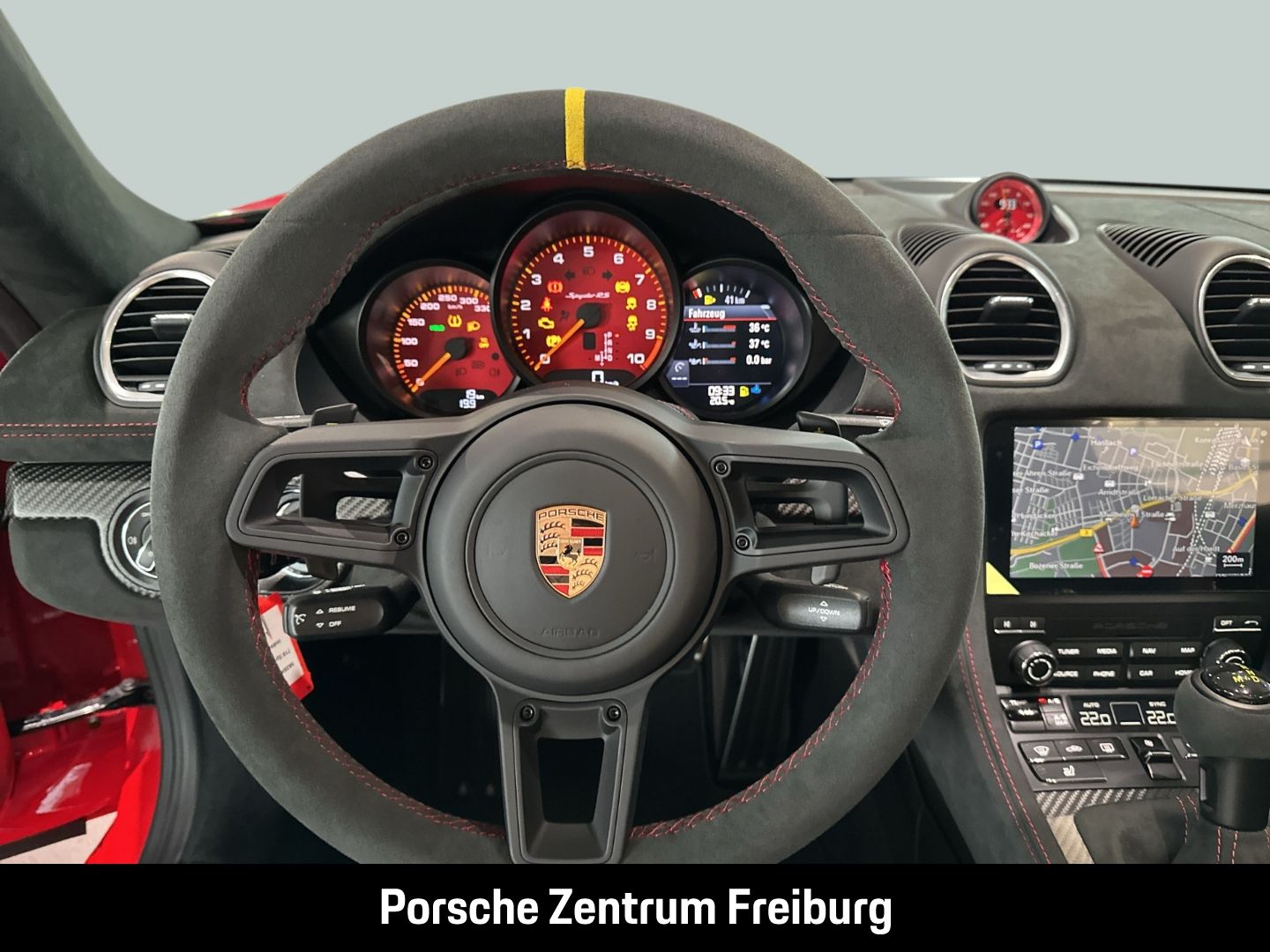 • Lenkradkranz (Alcantara / Race-Tex) mit 12-Uhr-Markierung in Gelb